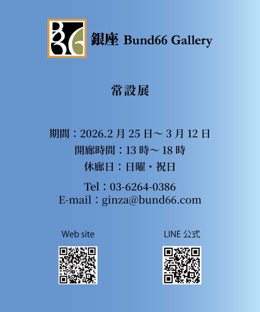 このたび、皆様に長らく親しんでいただいた当ギャラリーは、入居ビルの建て替えに伴い、2025年6月末日をもちまして一時休廊いたしました。そしてこの度、東銀座駅から徒歩4分の新築ビル1階へ移転し、ギャラリー名を「銀座 Bund66 Gallery(ギンザ バンドロクジュウロク ギャラリー)」へと改称いたします。